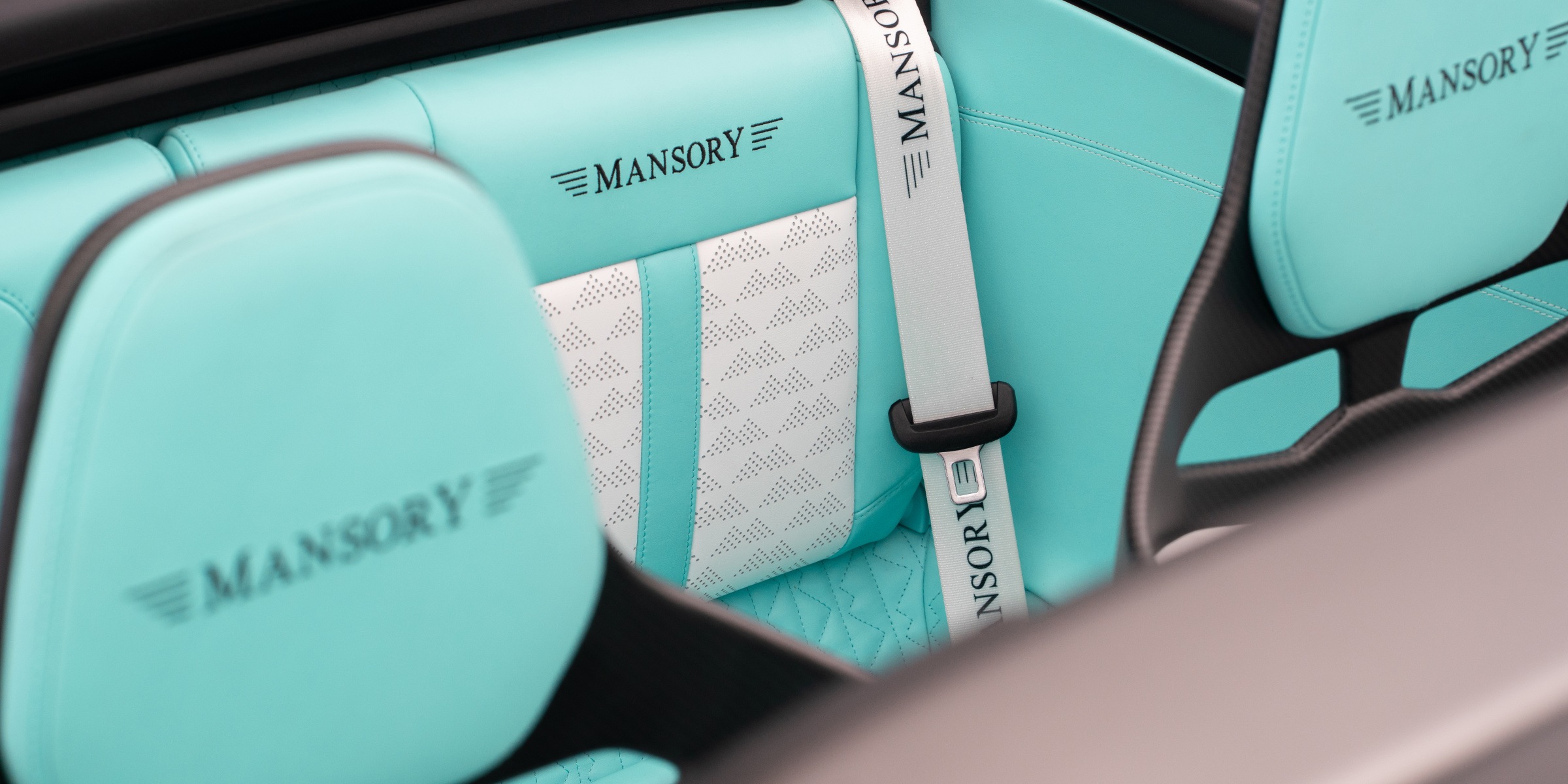 Specially made MANSORY floor mats, colour-matched seat belts with MANSORY logos and countless other precisely embroidered MANSORY logos elegantly round off the fully comprehensive refinement in the interior.