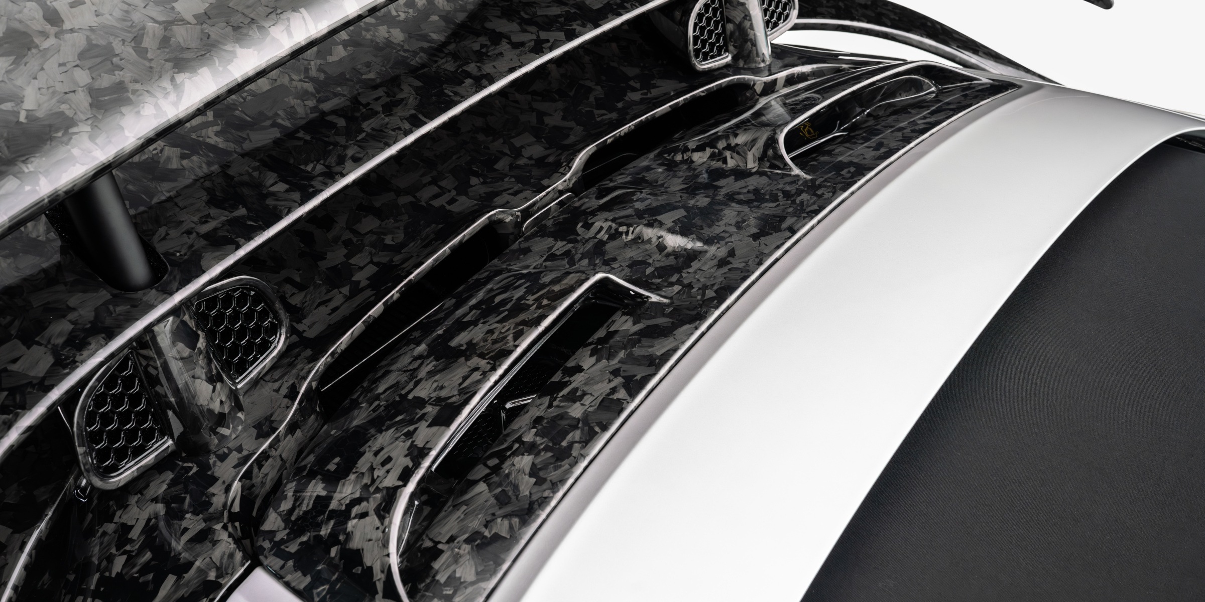 The air intakes in the rear side panel are framed by large air inlets made of visible carbon to ensure that sufficient fresh air flows to the engine in every driving condition.
