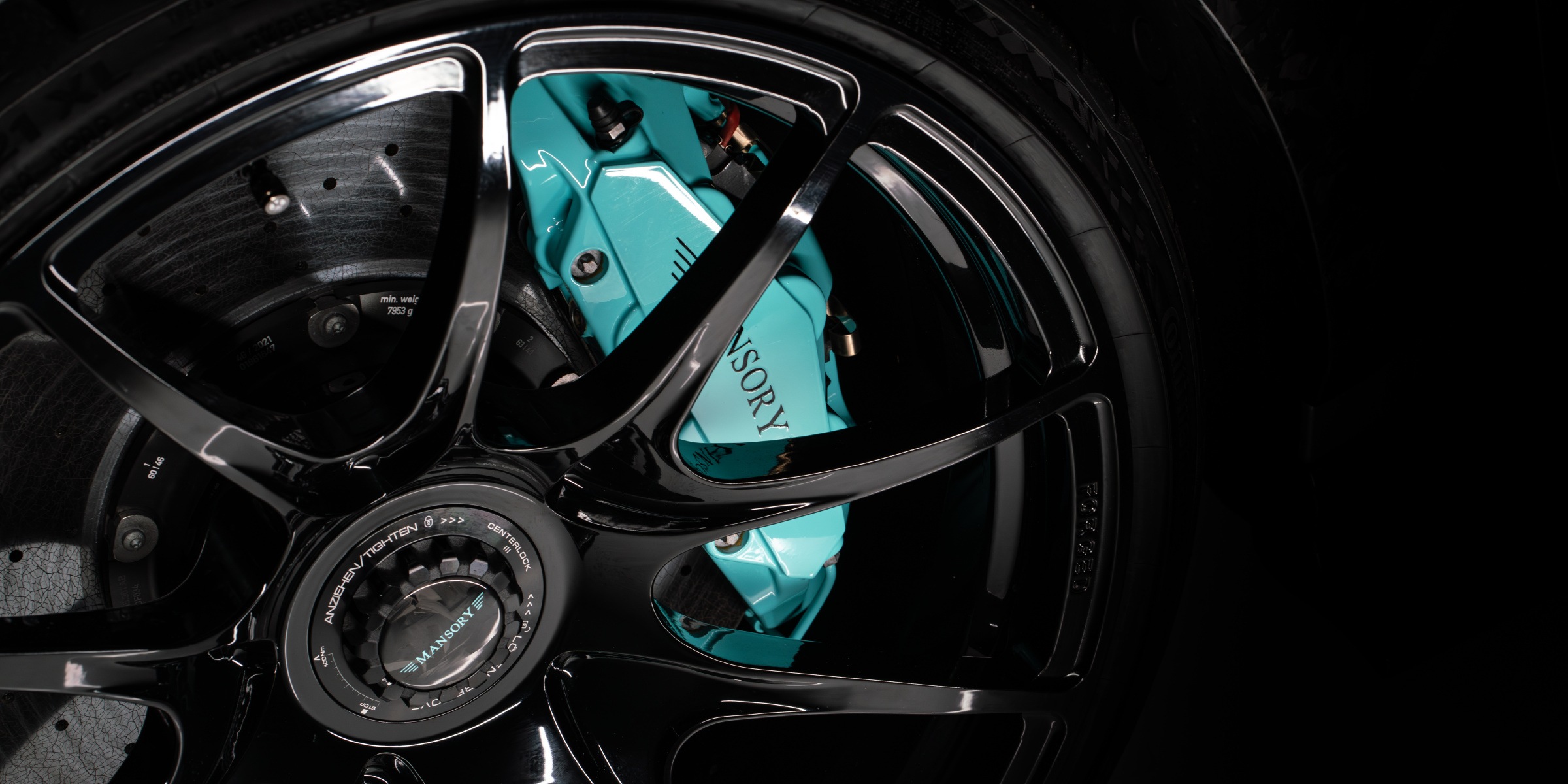 One-piece and ultra-light forged rims type "FV.5C" in the dimensions 9.5 x 21 and 12 x 22 are fitted in combination with high-performance tyres in the sizes 255/35 ZR21 (Front) and 335/25 ZR22 (rear) and offer both maximum performance in terms of lateral dynamics and the best possible track stability at high speeds.