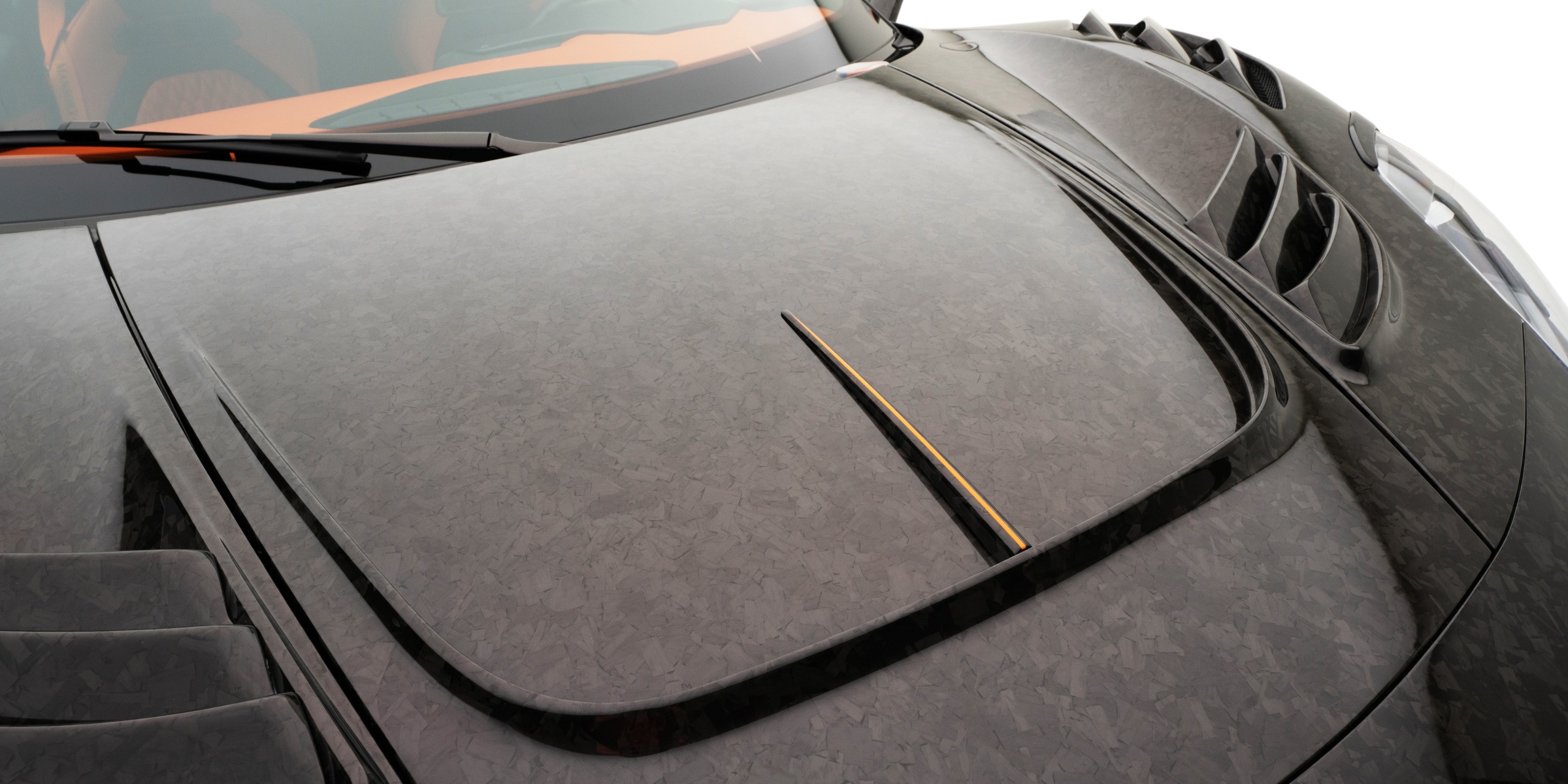 On the side, no less striking carbon wheel arches and the carbon air scoop with attached spoiler that reaches up to the windshield frame show the unmistakable signature and expertise of the MANSORY house when it comes to carbon processing.
