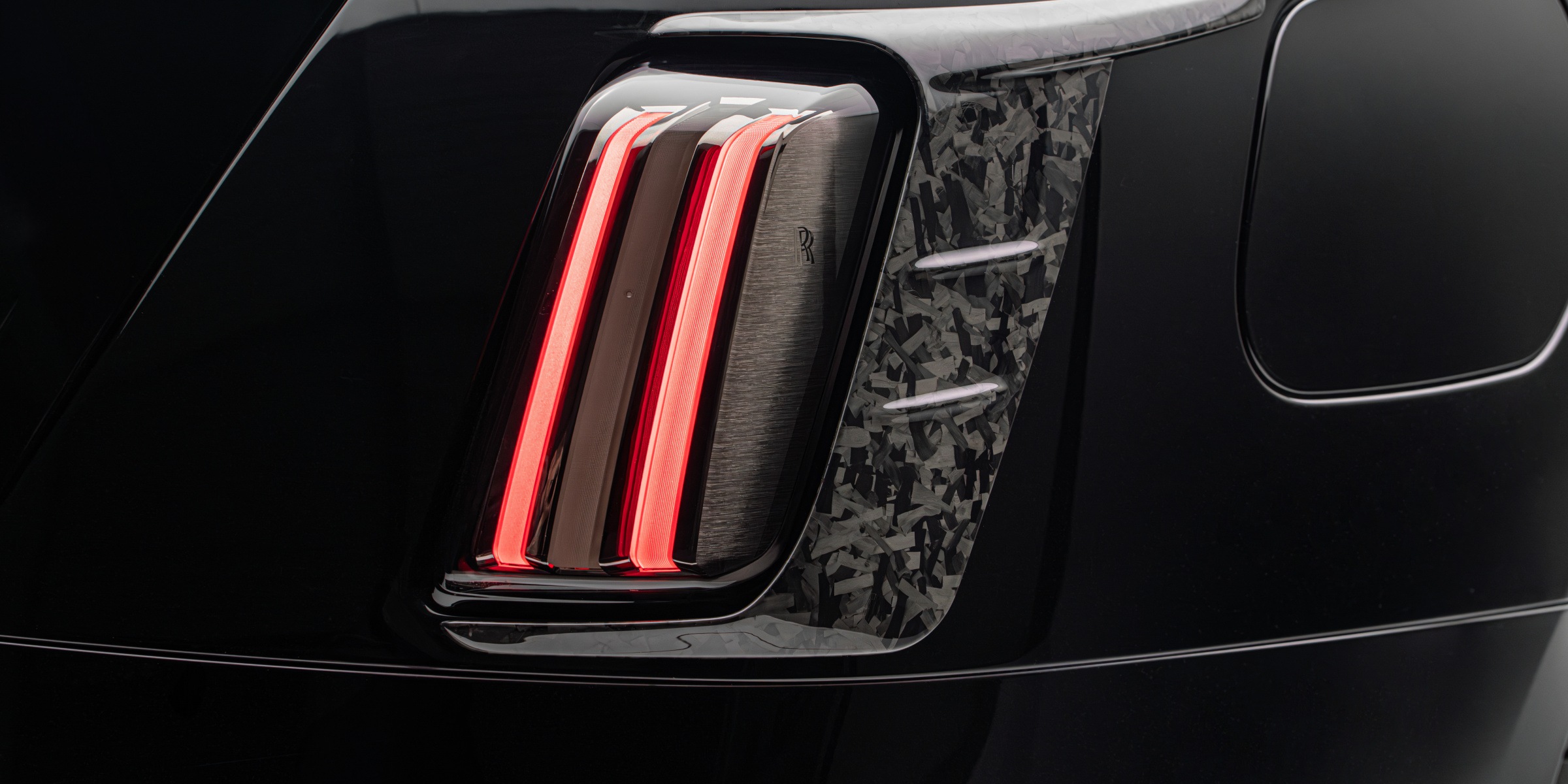 On the flanks, discreet sills in dark visible carbon ensure a holistic design approach. The air outlets in the fenders (also made of carbon fiber) and the black painted door handles complement the conversion work in the side view and make the “Rolls-Royce Spectre by MANSORY” appear significantly stronger, lower and sportier. To maximise the downforce on the rear axle, the MANSORY technicians installed an attractive spoiler on the tailgate as well as an aerodynamically coordinated rear diffuser. Both aerodynamic components are also made of visible carbon and, together with the carbon taillight surrounds, skilfully highlight the rear of the “Rolls-Royce Spectre by MANSORY”. The rear diffuser can be ordered with a central brake light on request.