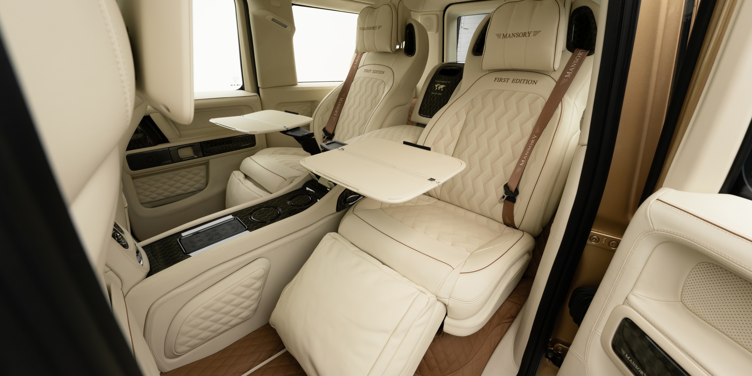 Extending the wheelbase is an ideal way to create more comfort and more space in the interior of a vehicle. This technically very complex type of vehicle modification is used in the “World Class Entrée” in conjunction with rear-hinged doors, creating another unique version of the Mercedes G-Class, which has also been combined with all the conversion measures typical of MANSORY.
