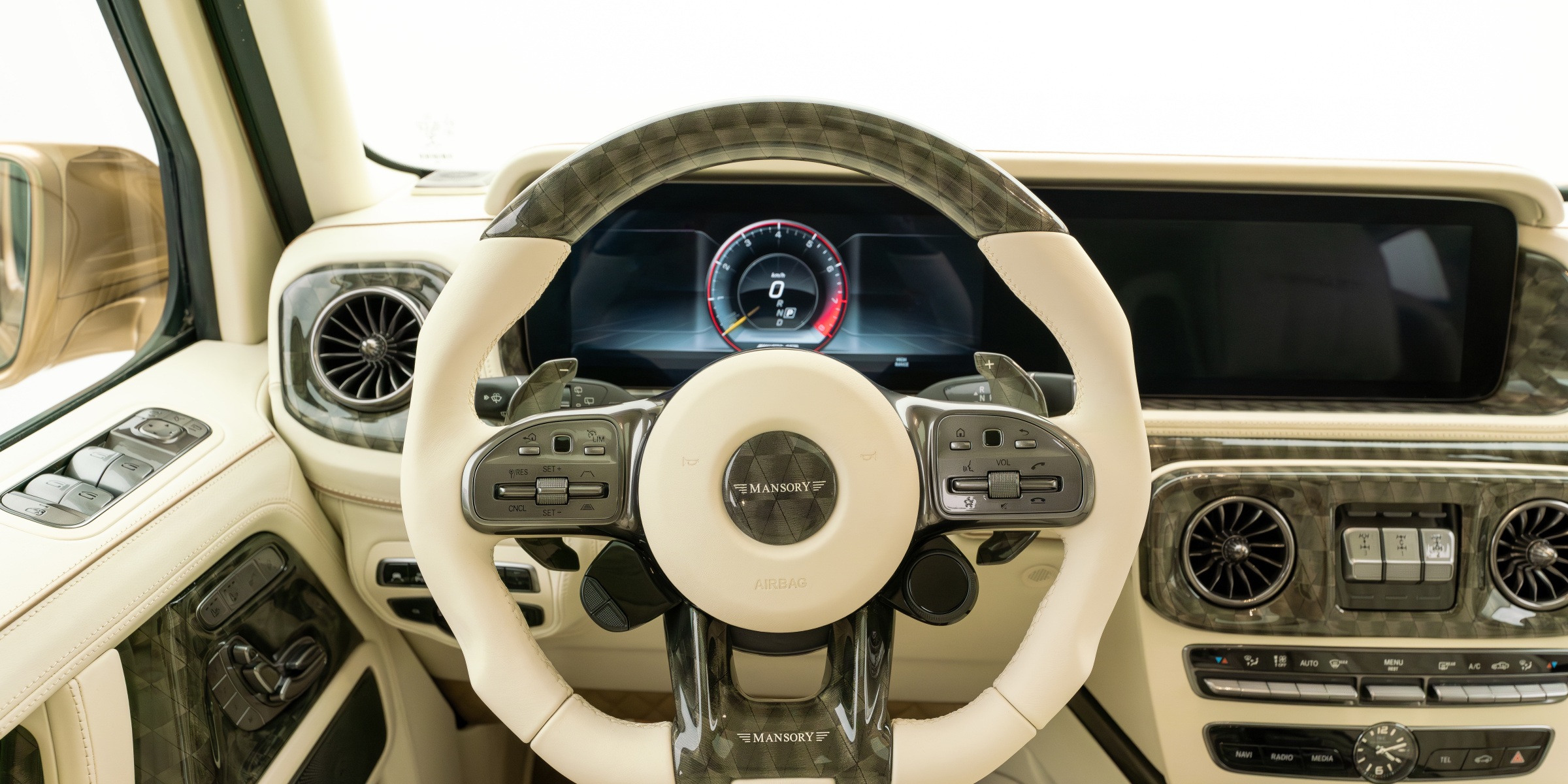 As with all MANSORY complete conversions, the interior can basically be freely selected in terms of colour, quilting and carbon design.