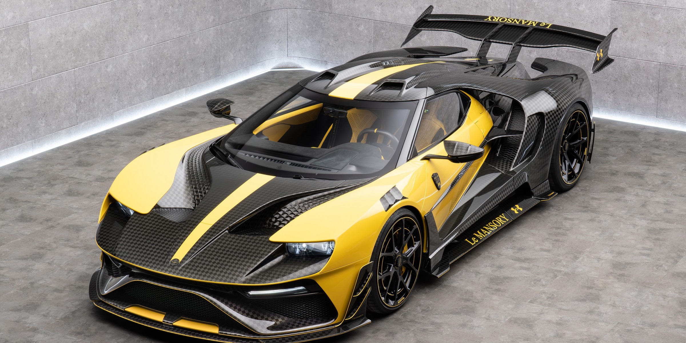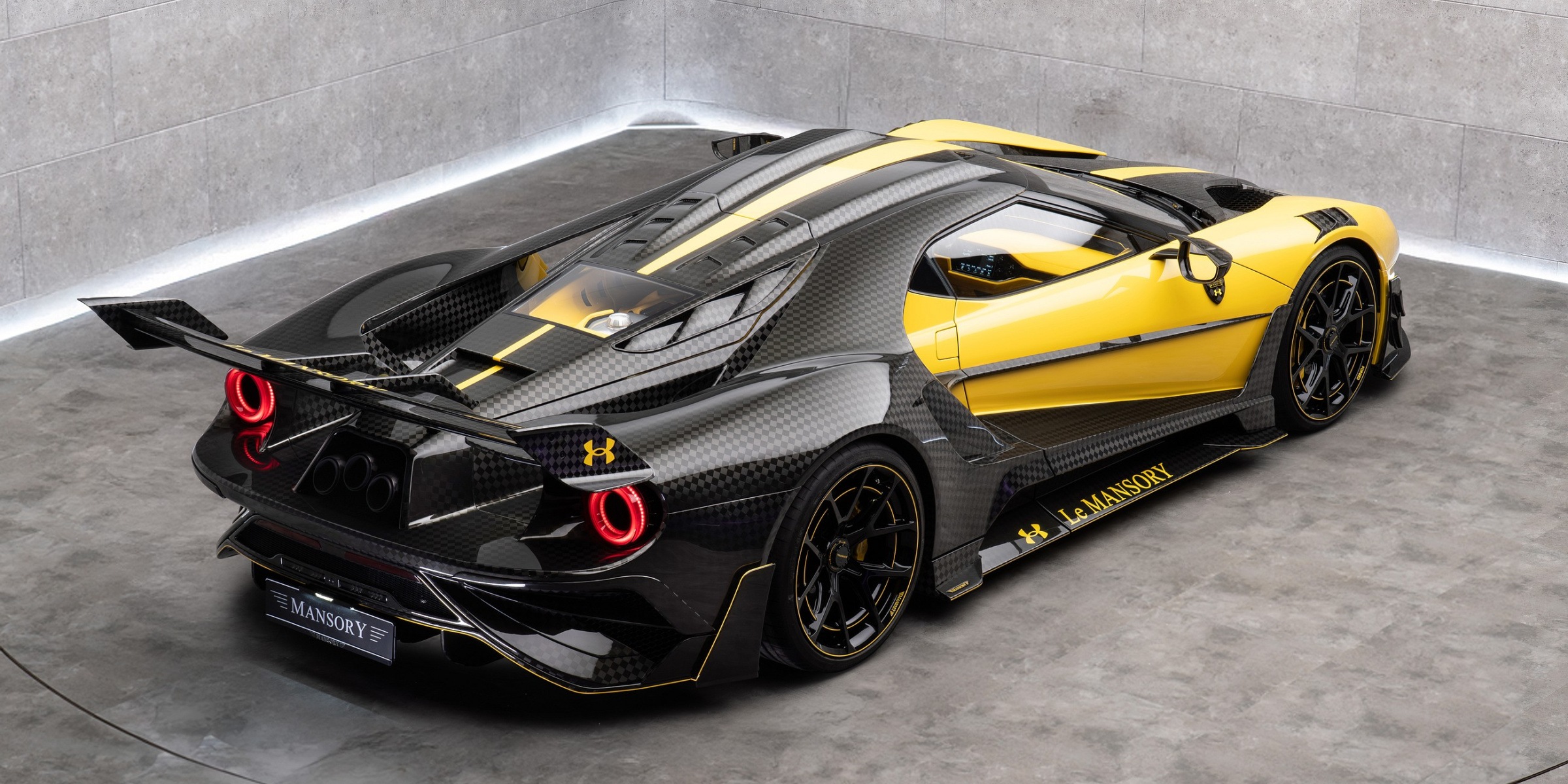 The completely new and exclusively developed LED main headlights are of particular importance to the design language of the “MANSORY x UNDER ARMOUR Le MANSORY”. This lighting system, divided into four individual headlights, gives the “MANSORY x UNDER ARMOUR Le MANSORY” a completely unique look, which on the one hand clearly distinguishes it from the standard, rather rounded Ford GT, but on the other hand also references it as best as possible and, thanks to the new design language, gives it a visual brilliance that makes the “MANSORY x UNDER ARMOUR Le MANSORY” unmistakable thanks to the enlarged air intakes and the new rear wing with integrated flaps.