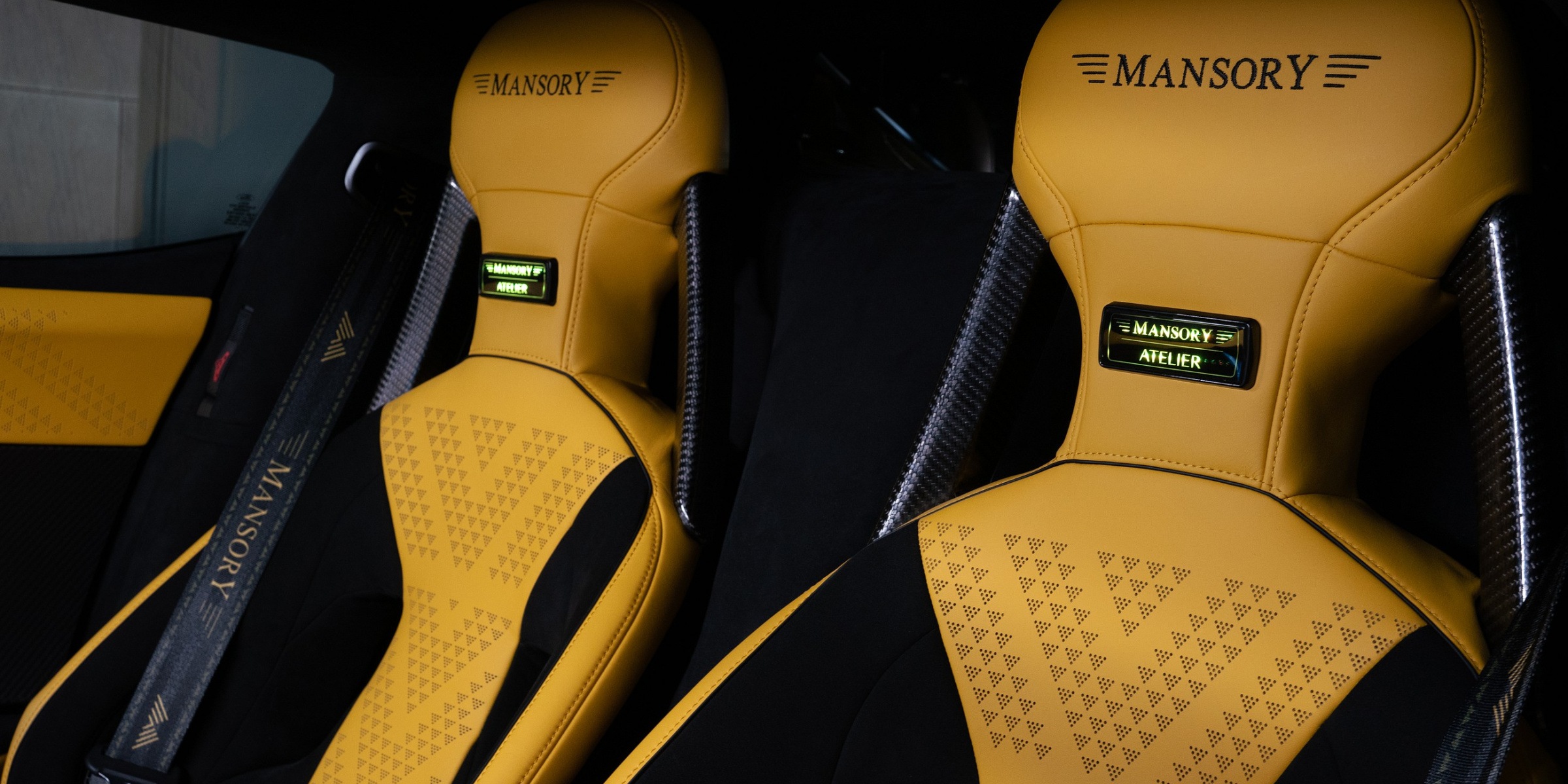 As is usual with all MANSORY complete conversions, almost no component in the interior was left untouched by the MANSORY specialists. Following the external colour concept, the colors black and yellow also dominate the interior of the "Le MANSORY UNDER ARMOUR" promotional car.